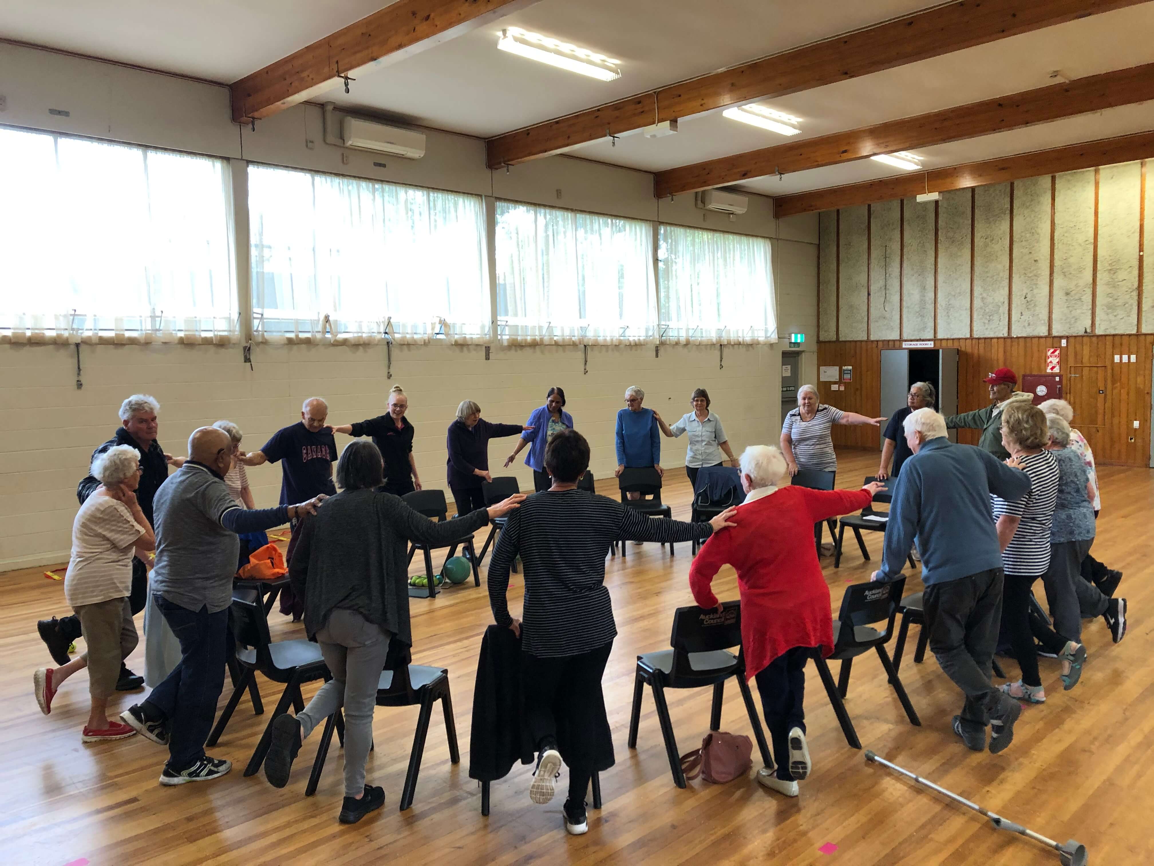 This is a community based, weekly falls prevention exercise class and is an ACC approved Community Strength and Balance programme. Following initial extensive instruction from Age Concern Auckland Health Promotion staff, each new class continues with support from volunteer peer leaders within the class, together with continued support and supervision from Age Concern Auckland. Classes run for an hour in total at various community venues and all attendees are encouraged to work at their own pace. Participants begin with seated warm up exercises followed by standing balance exercises, strengthening exercises, walking balance exercises and end with seated balance and warm down exercises.