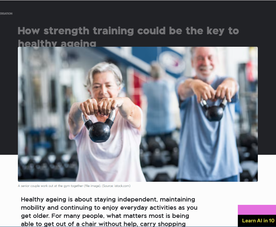 One news: Healthy ageing is about staying independent, maintaining mobility and continuing to enjoy everyday activities as you get older. For many people, what matters most is being able to get out of a chair without help, carry shopping home, climb the stairs and recover quickly after illness.By Christopher Hurst for The ConversationOne of the most important and well-established factors in healthy ageing is muscle strength. Sarcopenia, the age-related loss of muscle mass and strength, leads to reduced physical function and mobility.Over time, muscles become smaller and weaker. This matters because muscle does more than move our limbs: it stabilises joints, supports balance and acts as a reserve during illness or injury.As muscle strength declines, the risk of falls and fractures increases, particularly in later life. Estimates suggest that sarcopenia affects a substantial proportion of older adults, particularly those over the age of 70.