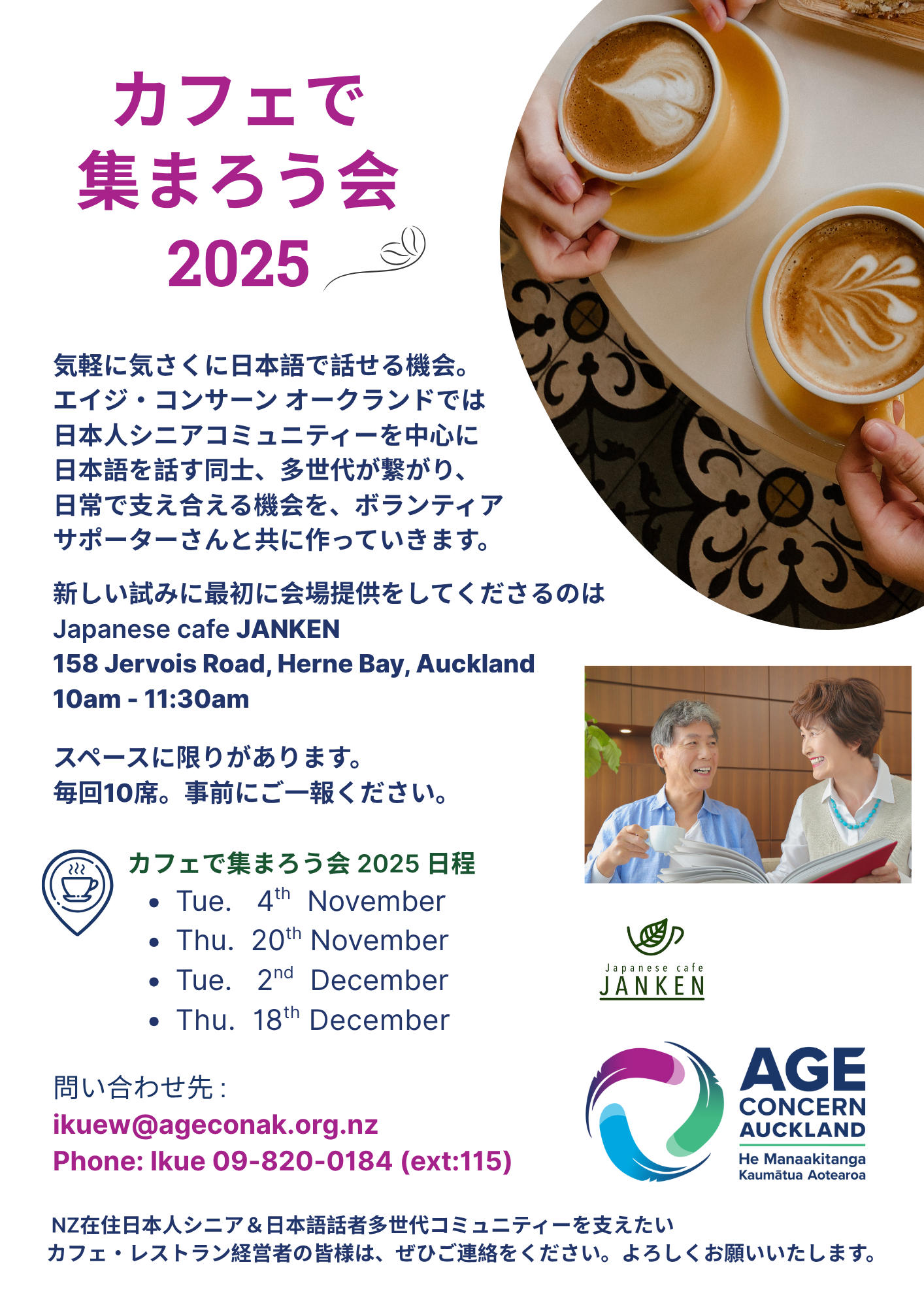 Japanese Monthly Meet Up offers a friendly space where Japanese-speaking older people and their family who living in Auckland can connect