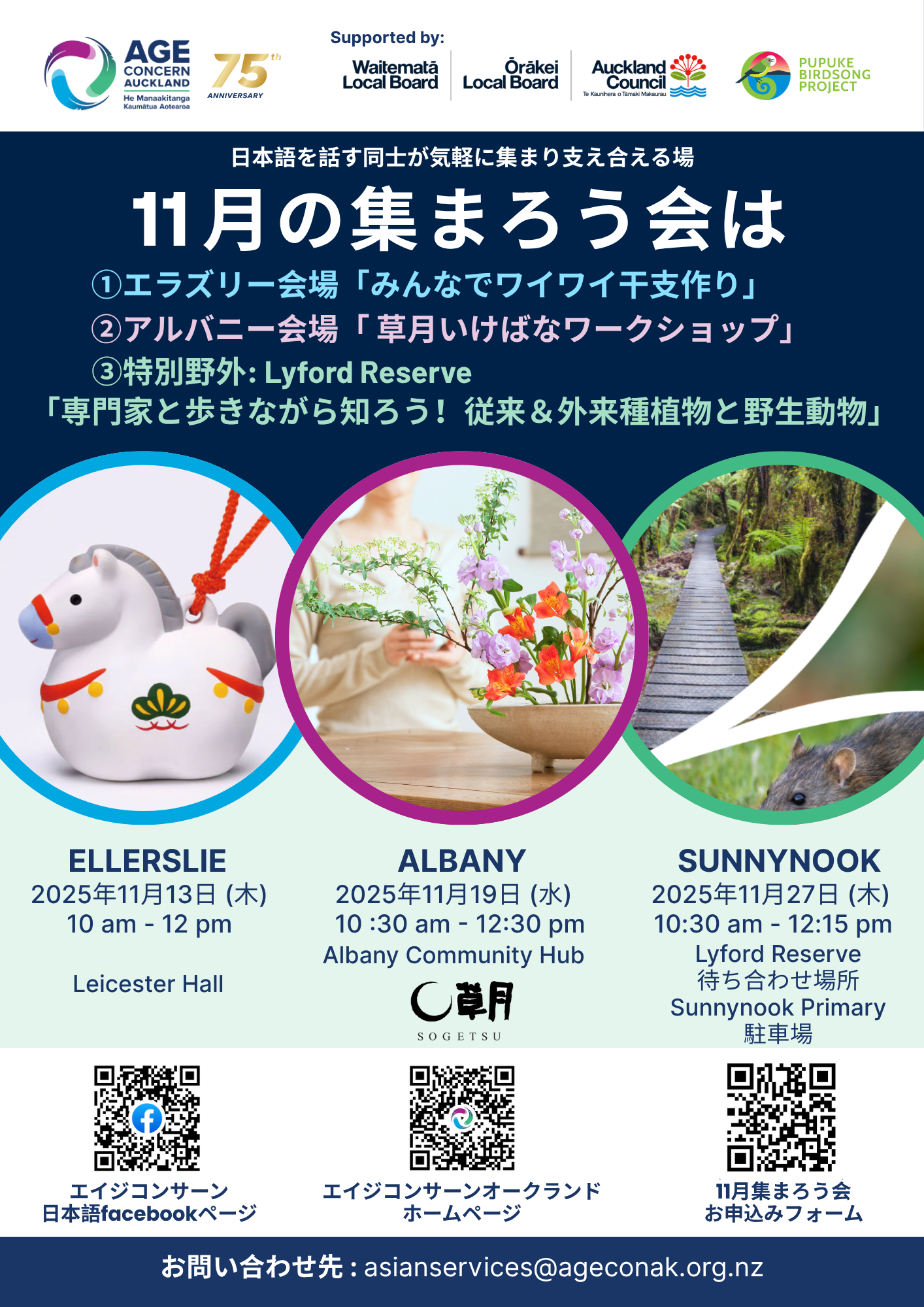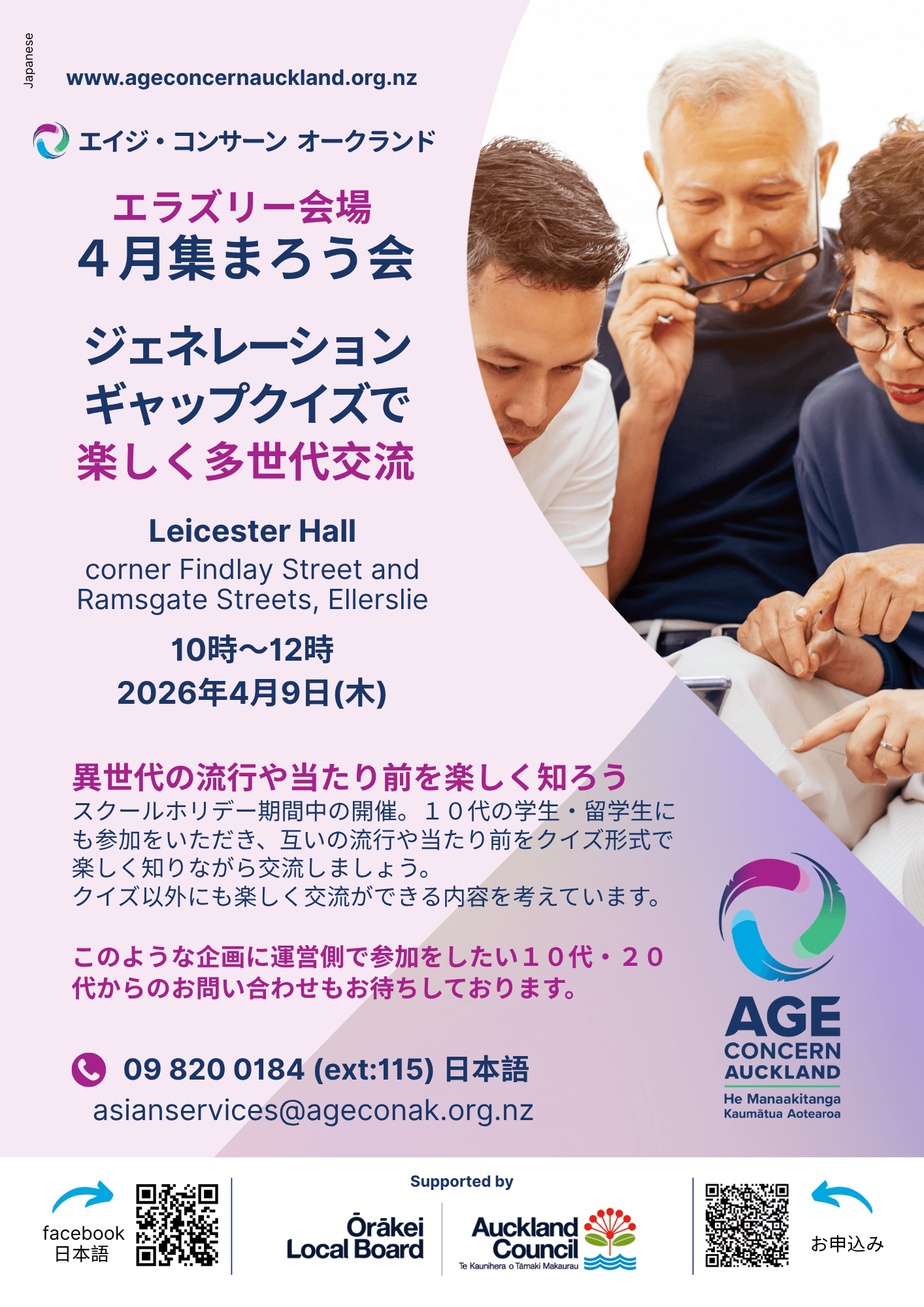 Japanese Monthly Meet Up offers a friendly space where Japanese-speaking older people and their family who living in Auckland can connect