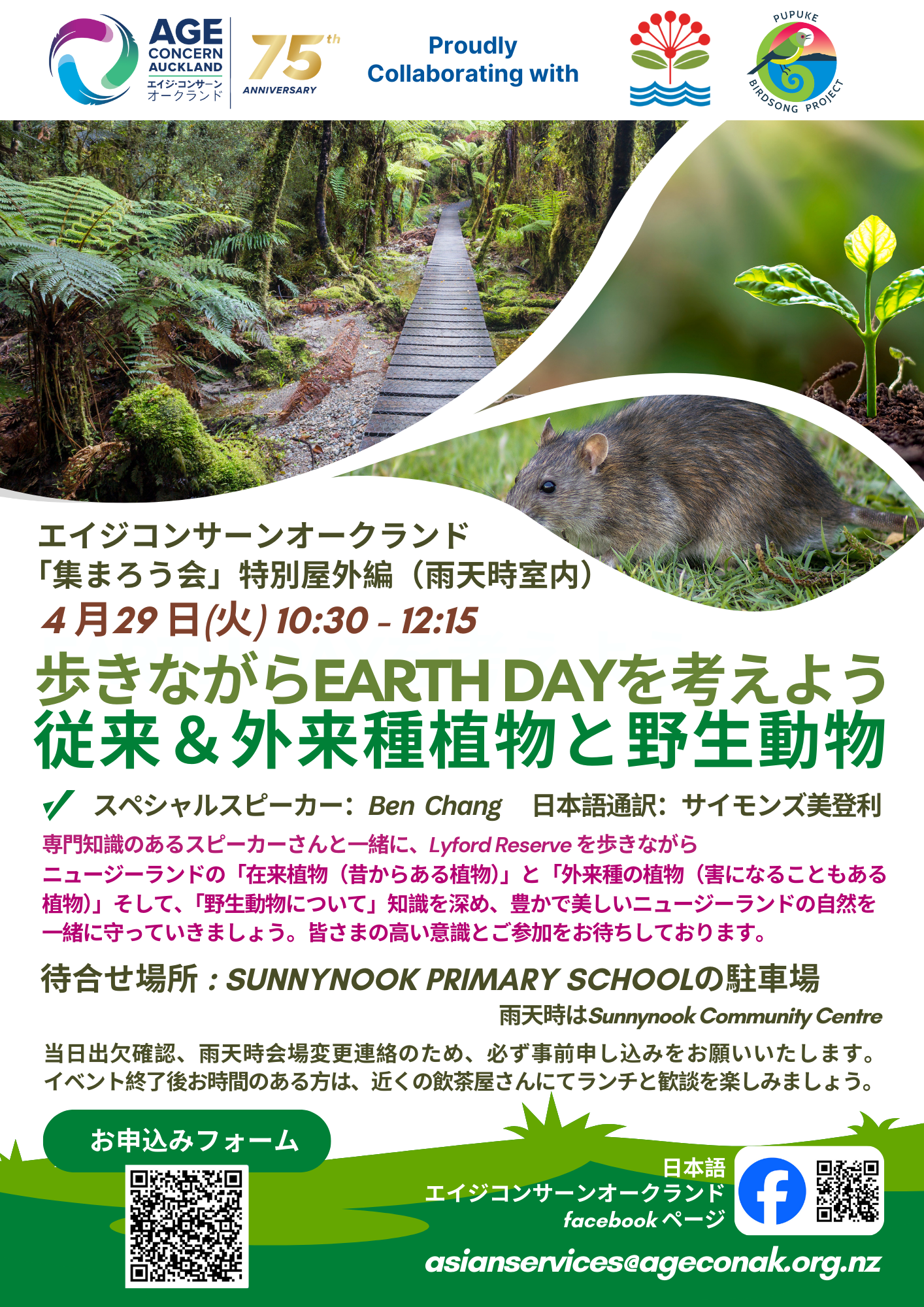 ニュージーランドの「在来植物(昔からある植物)」と「外来種の植物(害になることもある植物)」そして、「野生動物について」知識を深め、豊かで美しいニュージーランドの自然を一緒に守っていきましょう。年齢制限はありません。